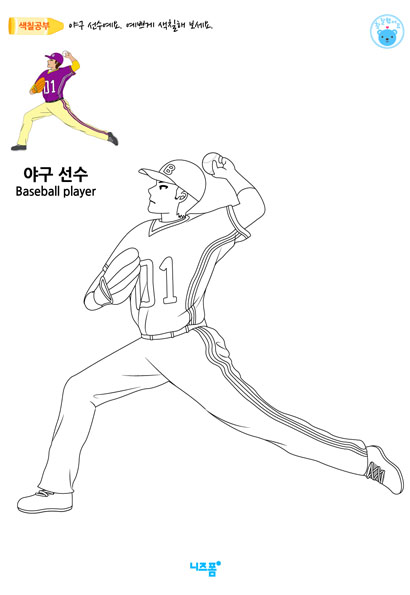 본 콘텐츠는 니즈폼(www.nizform.com)을 통해 서비스되는 스포츠친구들색칠공부_야구색칠공부(으)로서, 프린트하여 사용하시면 됩니다.