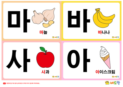 카드에 적힌 글자를 소리 내어 따라 읽으며, 한글을 익혀보세요.