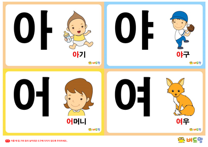 카드에 적힌 모음을 소리 내어 따라 읽으며, 한글을 익혀보세요.