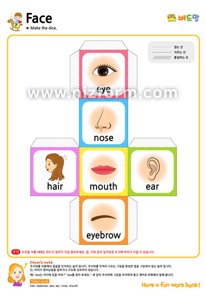 본 콘텐츠는 니즈폼(www.nizform.com)을 통해 서비스되는 영어창의놀이_얼굴놀이(주사위만들기)(으)로서, 프린트하여 사용하시면 됩니다.