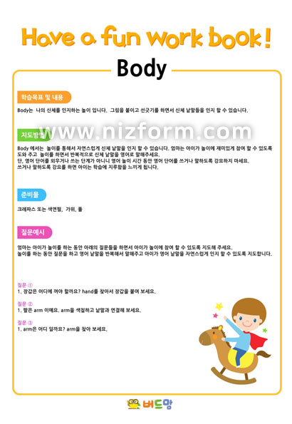 본 콘텐츠는 니즈폼(www.nizform.com)을 통해 서비스되는 영어창의놀이_신체놀이(학습방법)(으)로서, 프린트하여 사용하시면 됩니다.
