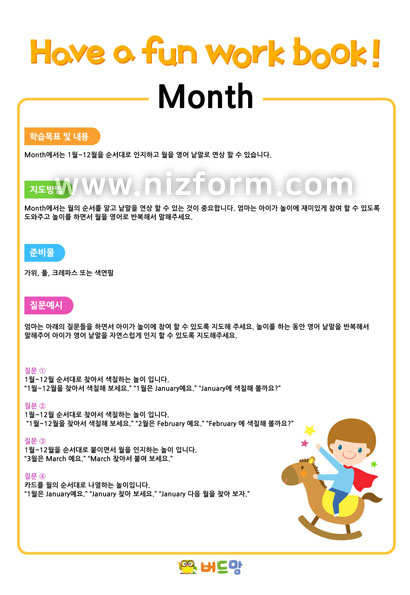 본 콘텐츠는 니즈폼(www.nizform.com)을 통해 서비스되는 영어창의놀이_날짜놀이(학습방법)(으)로서, 프린트하여 사용하시면 됩니다.
