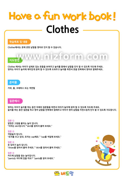본 콘텐츠는 니즈폼(www.nizform.com)을 통해 서비스되는 영어창의놀이_옷놀이(학습방법)(으)로서, 프린트하여 사용하시면 됩니다.