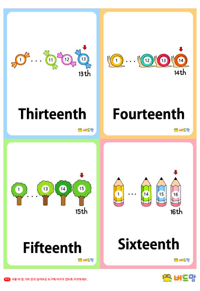 본 콘텐츠는 니즈폼(www.nizform.com)을 통해 서비스되는 영어낱말카드_영어카드(서수)(13~16)(으)로서, 프린트하신 후, 오려서 사용하시면 됩니다.