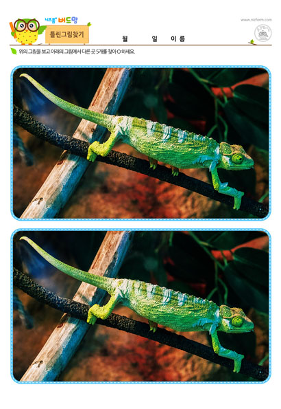 본 콘텐츠는 니즈폼(www.nizform.com)을 통해 서비스되는 틀린그림찾기_다른그림찾기(카멜레온)(으)로서, 프린트하여 사용하시면 됩니다.