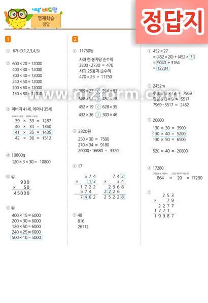 본 콘텐츠는 니즈폼(www.nizform.com)을 통해 서비스되는 곱셈영재학습(정답지)(으)로서, 프린트하여 사용하시면 됩니다.
