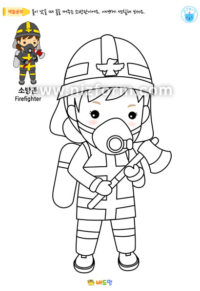 본 서식은 니즈폼(www.nizform.com)을 통해 서비스되는 색칠공부(소방관)도안입니다.